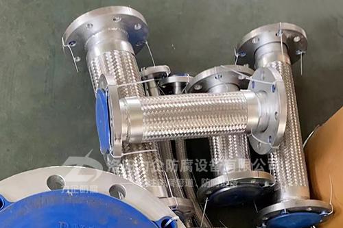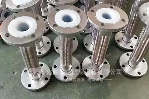 襯氟金屬軟管采用聚四氟乙烯軟管、編織網(wǎng)和不銹鋼雙扣螺旋軟管組成。